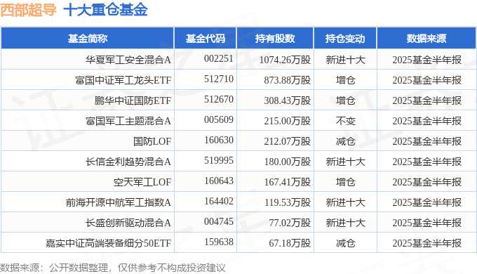 持有西部超導(dǎo)最多的基金為華夏軍工安全混合A,目前規(guī)模為44.86億元,最新凈值1.832(8月28日),較上一交易日上漲2.46%,近一年上漲61.98%。該基金現(xiàn)任基金經(jīng)理為萬方方。