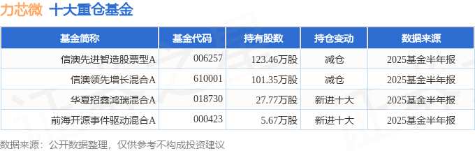持有力芯微最多的基金為信澳先進(jìn)智造股票型A,目前規(guī)模為13.65億元,最新凈值2.4126(8月29日),較上一交易日下跌1.28%,近一年上漲116.36%。該基金現(xiàn)任基金經(jīng)理為齊興方。