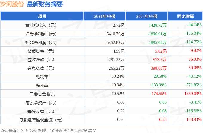 沙河股份(000014)2025年中報(bào)簡(jiǎn)析:凈利潤同比下降135.04%,三…