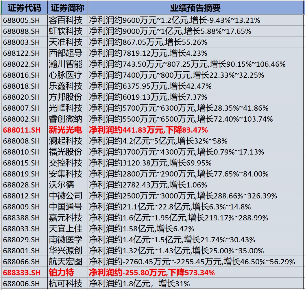 分類型來看,25家科創(chuàng)板公司中,嘉元科技、瀚川智能等7家公司業(yè)績(jī)預(yù)增較大,容百科技續(xù)盈,中微公司扭虧。
