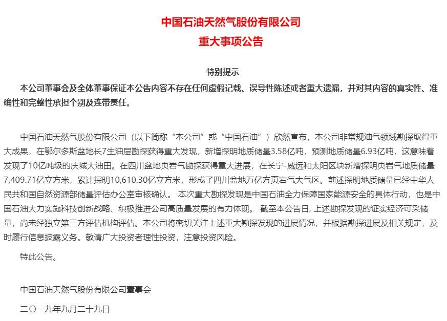 9月29日晚間,中國石油(601857)公告兩項(xiàng)重大油氣勘探成果: