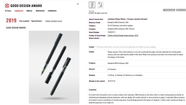 為國(guó)產(chǎn)中性筆首例,晨光文具斬獲2019日本G-mark設(shè)計(jì)獎(jiǎng)