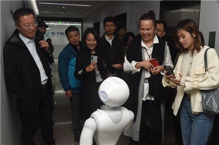 電子城?國際電子總部迎賓機器人(14.110, -0.17, -1.19%)備受歡迎