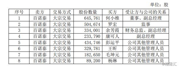 此次權(quán)益變動(dòng)前,百諾泰持有公司股份約339.88萬(wàn)股,占公司總股本的0.99%,此次權(quán)益變動(dòng)后,百諾泰不再持有公司股份。此次權(quán)益變動(dòng),公司部分董事、監(jiān)事、高級(jí)管理人員持有公司股份的方式由間接持有變更為直接持有,主要是為了更加嚴(yán)格、更好的履行上述董監(jiān)高各自在公司首次公開(kāi)發(fā)行股票前作出的間接持股鎖定承諾。