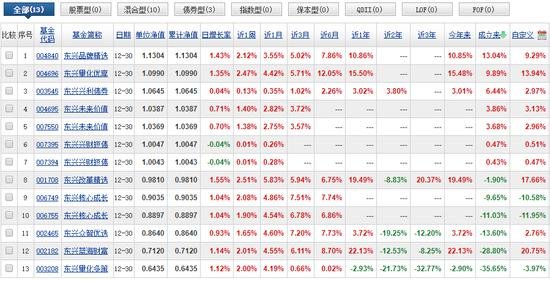 以下是東興證券旗下公募基金今年業(yè)績一覽表