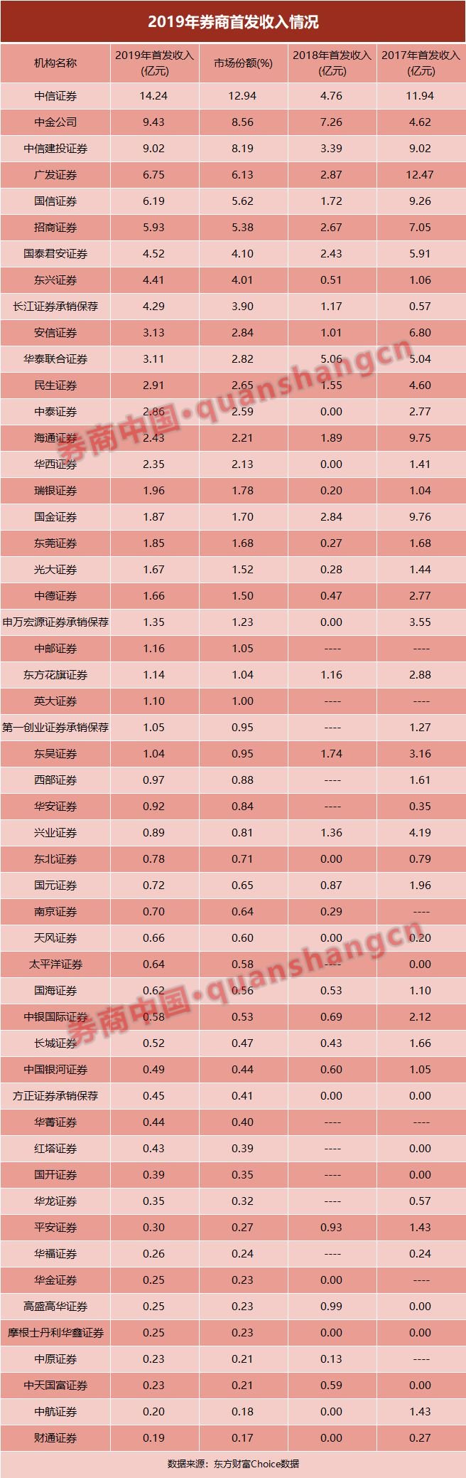 2019券業(yè)IPO業(yè)務(wù)大豐收,入賬110億大增1倍!10家包攬62%市場份額