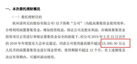 諾邦股份使用閑置募集資金1.50億元進(jìn)行現(xiàn)金管理