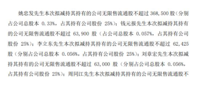 常務(wù)副總經(jīng)理姚忠發(fā)本次擬減持其持有的公司無限售流通股不超過368,500股(分別占公司總股本0.33%,占其持有公司股份25%);
