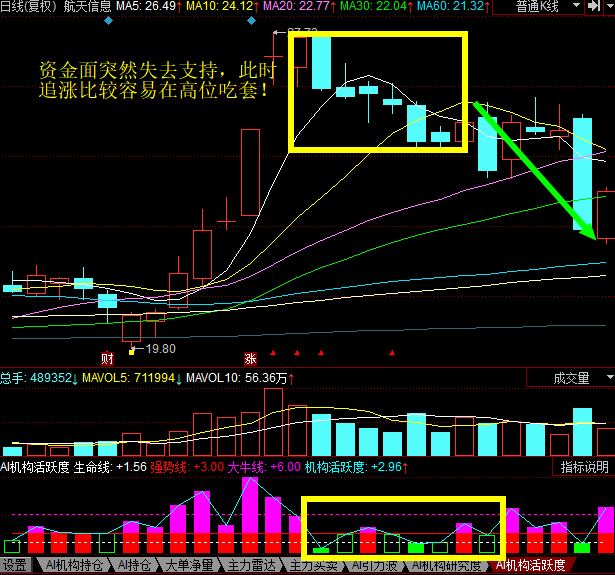 那么在實(shí)際交易中,我們要怎么避免如當(dāng)前創(chuàng)力集團(tuán)(603012)這樣的弱勢(shì)呢?用四個(gè)字來(lái)形容就是“未雨綢繆”。舉例來(lái)說(shuō),【航天信息(600271)、股吧】算是軍工+計(jì)算機(jī)的主流品種,但是該股在4月上旬開(kāi)始出現(xiàn)一輪連續(xù)回調(diào),很多追漲投資者深套其中,何解?