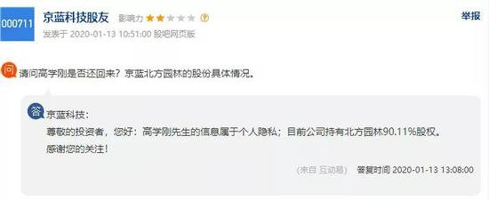 根據(jù)互動(dòng)易的最新內(nèi)容,有投資者詢問:“請(qǐng)問高學(xué)剛是否還回來?京藍(lán)北方園林的股份具體情況?!?/p>