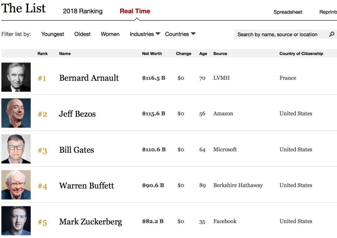 目前福布斯富豪榜前三名的財富凈值均在1100億美元左右,且相差并不算特別懸殊,所以這個榜單的前三名位置并不穩(wěn)定。