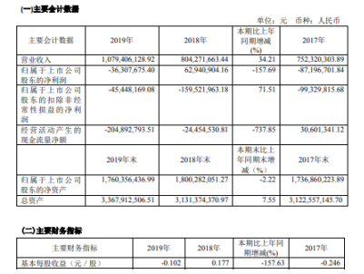 4月18日消息,【ST藍科(601798)、股吧】(601798)近日發(fā)布2019年年度報告,2019年公司營業(yè)收入1,079,406,128.92元,同比增長34.21%,實現(xiàn)歸屬于上市公司股東的凈利潤-36,307,675.40元,同比盈轉虧;實現(xiàn)基本每股收益-0.102元,上年同期為0.177元。