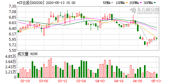 證券時報·數(shù)據(jù)寶統(tǒng)計,截至發(fā)稿,*ST云投收盤價為5.98元,下跌0.66%,籌碼持續(xù)集中以來股價累計下跌14.33%。具體到各交易日,9次上漲,10次下跌,其中,跌停2次。