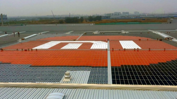 小米汽車(chē)工廠(chǎng)最初設(shè)計(jì)是在TPO屋面通過(guò)光伏支架架設(shè)光伏。后經(jīng)充分論證,考慮到光伏支架穿屋面會(huì)破壞小米汽車(chē)工廠(chǎng)屋面構(gòu)造,支架屋面開(kāi)孔二次封閉極易出現(xiàn)漏水隱患,同時(shí)穿屋面支座造成冷橋還會(huì)帶來(lái)室內(nèi)結(jié)露滴水問(wèn)題。隆基森特基于豐富的行業(yè)經(jīng)驗(yàn)以及完備的風(fēng)險(xiǎn)預(yù)估體系,采用BIPV光伏建筑一體化安裝方式,并在中間鋪設(shè)TPO卷材,雙層防水,打造屋頂“防水+光伏”行業(yè)典范。