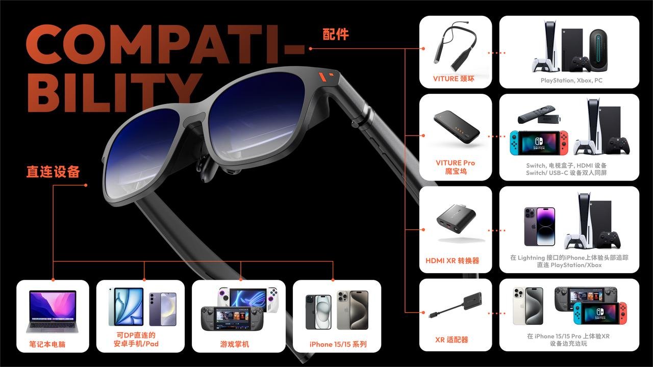 2024年,VITURE推出第二款產(chǎn)品VITURE Pro XR眼鏡,在入眼亮度、色準(zhǔn)、清晰度、Eyebox等核心參數(shù)上全面達(dá)到旗艦級(jí)水準(zhǔn),處于行業(yè)領(lǐng)先地位,并已通過中國電子技術(shù)標(biāo)準(zhǔn)化研究院塞西實(shí)驗(yàn)室的權(quán)威認(rèn)證。此外,VITURE還與知名游戲外設(shè)品牌八位堂聯(lián)手,推出了聯(lián)名游戲手柄,采用經(jīng)典的Xbox鍵位布局,完美適配PS、Switch等游戲機(jī)以及VITURE頸環(huán),深度綁定了游戲生態(tài),為玩家提供一整套的沉浸式游戲體驗(yàn)。