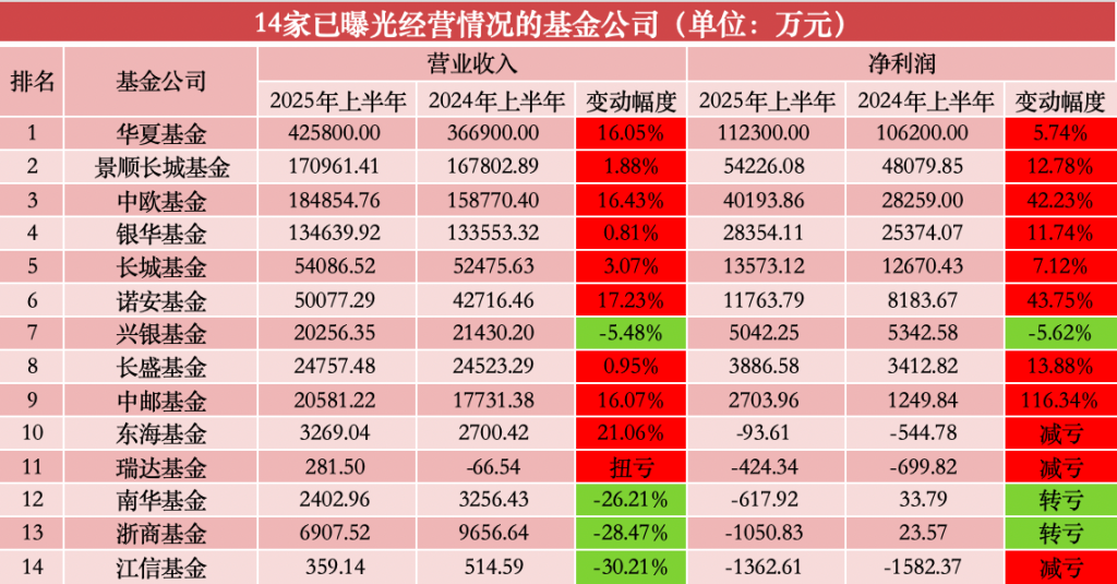 14家公募上半年業(yè)績揭曉:8家凈利正增長,南華、浙商由盈轉(zhuǎn)虧