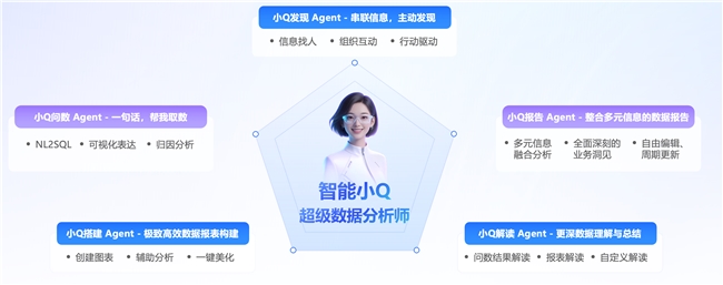在數(shù)據(jù)分析與應(yīng)用上,瓴羊致力于打造“超級數(shù)據(jù)分析師”智能小Q,放大業(yè)務(wù)的數(shù)據(jù)價(jià)值。它具備五大核心能力:通過智能問答讓業(yè)務(wù)人員直接獲取數(shù)據(jù);利用智能洞察自動(dòng)分析數(shù)據(jù)波動(dòng)原因;借助報(bào)告撰寫能力自動(dòng)生成數(shù)據(jù)報(bào)告內(nèi)容;通過智能搭建快速創(chuàng)建報(bào)表;最終實(shí)現(xiàn)主動(dòng)推送關(guān)鍵指標(biāo),實(shí)現(xiàn)從“人找數(shù)”到“數(shù)找人”的變革升級。實(shí)踐證明,這一解決方案在金融行業(yè)中已有效的提升了決策效率。