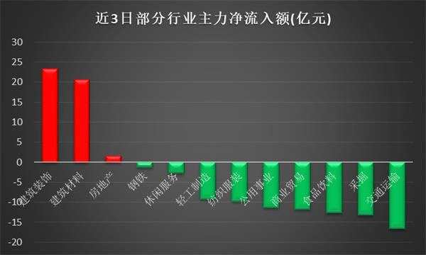 通常來說,板塊的異動(dòng)離不開資金的驅(qū)動(dòng)。據(jù)數(shù)據(jù)統(tǒng)計(jì),從近3日主力資金流向來看,建筑裝飾、建筑材料、房地產(chǎn)恰恰位列三甲,分別凈流入23.42、20.67、1.76億元。而其余行業(yè)均為凈流出。