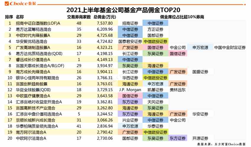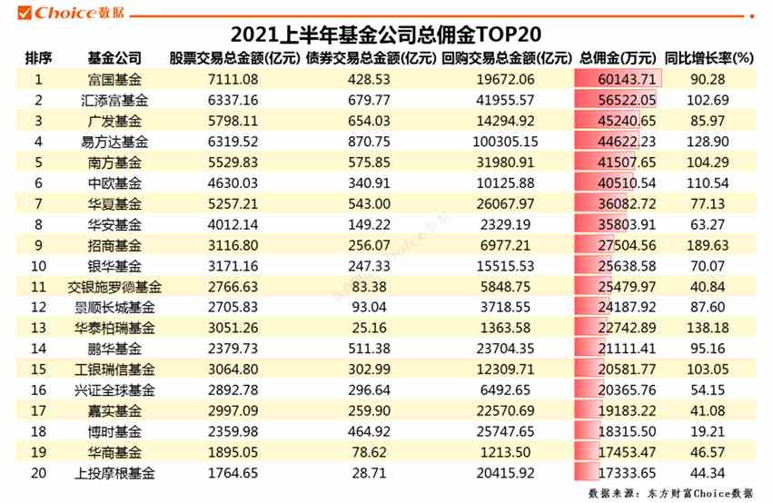 基金公司基金產(chǎn)品傭金TOP20
