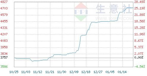 圖1醋酸價格走勢圖(2017年10月25日到2018年1月23日)