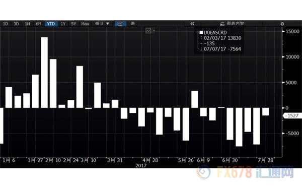 這也意味著過去六周以來,自低點反彈了近20%的原油價格,其實在很大程度上是受到了投機買盤的助推。在美國原油庫存大幅下降的背景下,市場投機情緒由空轉(zhuǎn)多,其實也是情有可原。于是在此情緒帶動之下,NYMEX原油在7月錄得了自2016年4月以來15個月的最大漲幅。