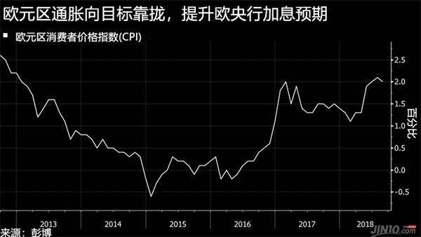 從以上種種跡象來看,也就不難理解為何歐央行行長德拉基會在周一的時候再次放出鷹派言論。目前歐元區(qū)的通脹增速加快,經(jīng)濟持續(xù)增長,加上意大利民粹主義對歐盟的敵意有所緩和,以及近期面臨的來自美國的貿(mào)易壓力減小。隨著歐元區(qū)通脹向目標(biāo)靠攏,歐洲央行正在推進(jìn)今年結(jié)束資產(chǎn)購買的計劃。