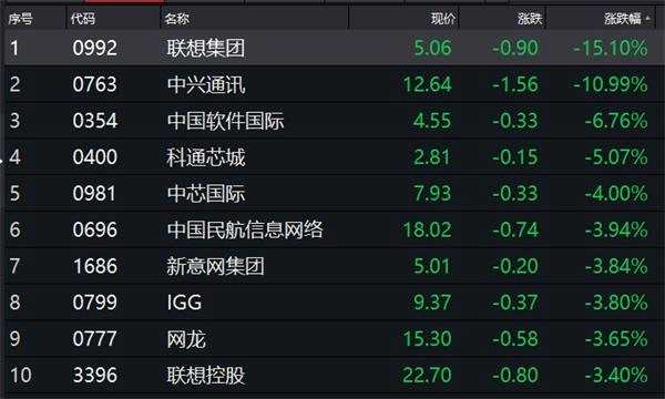 聯(lián)想中興大跳水科技股重挫