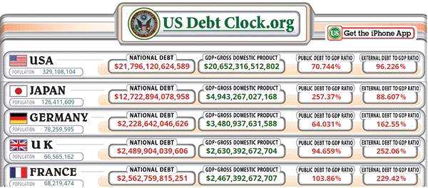 (全球主要經(jīng)濟(jì)體債務(wù)與GDP關(guān)系,來源:usdebtclock。org,點(diǎn)擊圖片即可輕松開始交易~)