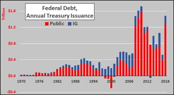 他警告稱,除了2009年和2010年,2018年是美國(guó)財(cái)政部發(fā)行債券最多的一年。2018年美國(guó)經(jīng)濟(jì)態(tài)勢(shì)良好,聯(lián)邦政府卻發(fā)行了那么多債券。當(dāng)下次經(jīng)濟(jì)衰退來(lái)襲時(shí),美國(guó)政府還能發(fā)行多少新債讓他感到擔(dān)心。