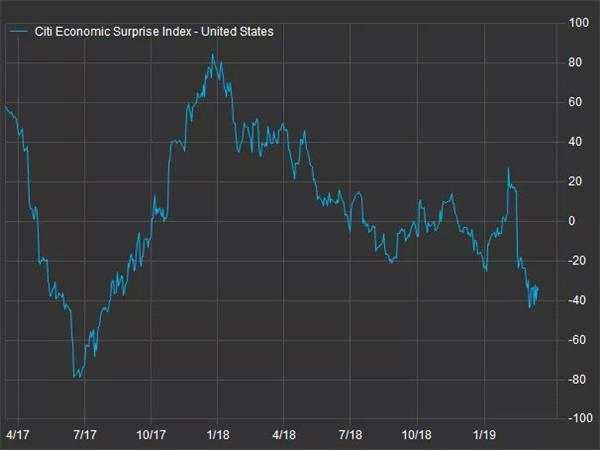 “對經(jīng)濟增長可能停滯不前的擔心讓市場擔心,”花旗經(jīng)濟驚喜指數(shù)(Citi Economic Surprise Index)是一個受歡迎的衡量經(jīng)濟數(shù)據(jù)與經(jīng)濟學家預期對比的經(jīng)濟晴雨表,目前該指數(shù)接近負35,并在本月早些時候創(chuàng)下2017年8月以來的最低水平。指數(shù)如果為負就意味著大多數(shù)經(jīng)濟數(shù)據(jù)低于經(jīng)濟學家預期;正數(shù)則意味著大部分經(jīng)濟數(shù)據(jù)超出經(jīng)濟學家預期。