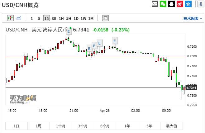 離岸人民幣兌美元日內(nèi)漲逾200點(diǎn),收復(fù)6.73關(guān)口