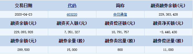 摘要: 中貝通信(603220)2020-04-23融資融券信息顯示。