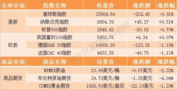 摘要: 【隔夜外盤】歐美股市漲跌互現(xiàn),道指跌超200點,納指漲0.51%,標普500指數(shù)跌0.70%;美油跌2.32%,布油跌4.04%;金價跌逾1%。
