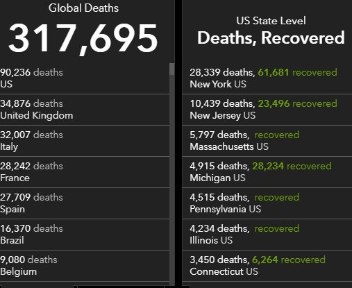 根據(jù)約翰斯·霍普金斯大學(xué)的最新數(shù)據(jù)統(tǒng)計(jì),截至北京時(shí)間5月19日6時(shí)32分,美國(guó)新冠肺炎死亡病例已經(jīng)超過(guò)9萬(wàn)例;確診病例超過(guò)150萬(wàn)例。全球確診超過(guò)478萬(wàn),死亡超過(guò)31萬(wàn)。