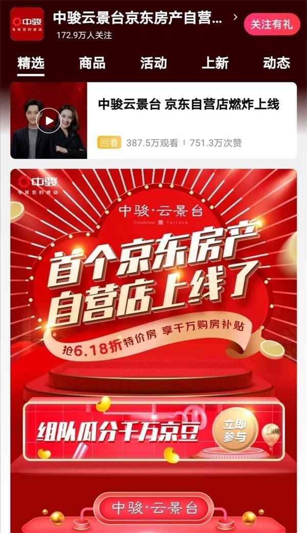 而中駿云景臺京東房產(chǎn)自營旗艦店開店首日粉絲就超過170萬。