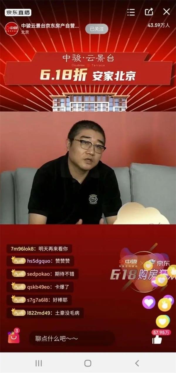 前有恒大攜手佟大為直播賣房38套一秒被搶光,5月22日上午11點,京東零售集團CEO徐雷也親自下場嘗試直播賣房,并在直播中抽出一套6.18折特價房作為大獎。