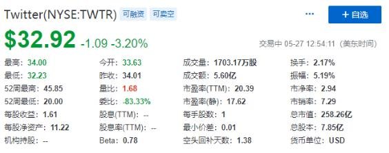 特朗普出手,推特股價(jià)大跌