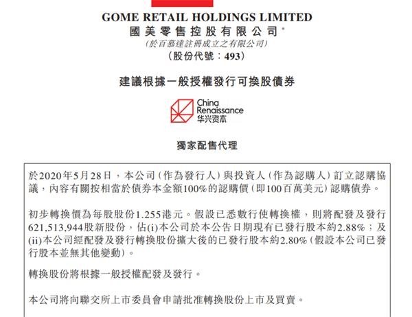 摘要: 劉強(qiáng)東“牽手”黃光裕!這將是一個(gè)怎樣的大場(chǎng)面?5月28日晚間,國(guó)美零售(00493)公告稱,已于2020年5月28日,公司(作為發(fā)行人)與投資人(作為認(rèn)購(gòu)人,JD.com International Limited)訂立認(rèn)購(gòu)協(xié)議,內(nèi)容有關(guān)按相當(dāng)于債券本金額100%的認(rèn)購(gòu)價(jià)(即1億美元,折合人民幣約7.16億元)認(rèn)購(gòu)債券。