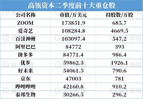 高瓴資本的前十大持倉(cāng)市值超78.8億美元,占比72%,其中,前五大重倉(cāng)股分別是ZOOM、愛(ài)奇藝、百濟(jì)神州、阿里巴巴和拼多多。這五只股票的持有市值分別為17.39億美元、10.83億美元、10.31億美元、8.48億美元和8.47億美元。