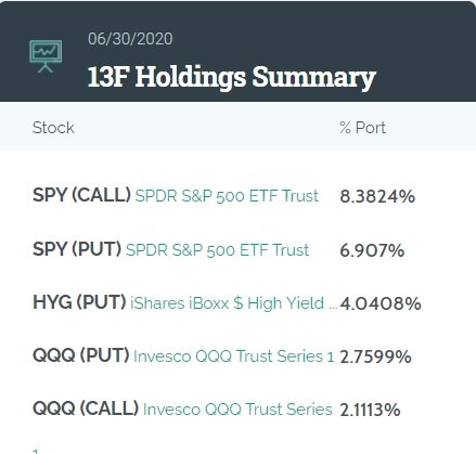 花旗的前五大持倉(cāng)股包括:標(biāo)普500指數(shù)ETF看跌期權(quán)、iShares羅素2000指數(shù)ETF看跌期權(quán)、標(biāo)普500指數(shù)ETF、標(biāo)普500指數(shù)ETF看漲期權(quán)和Invesco納斯達(dá)克100指數(shù)ETF看跌期權(quán)。