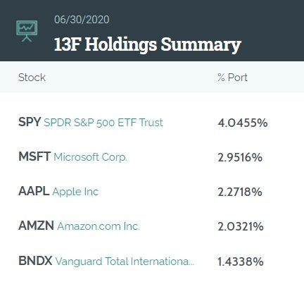 從前五大持倉(cāng)來(lái)看,摩根大通重倉(cāng)標(biāo)普500指數(shù)ETF、微軟、蘋果、亞馬遜以及Vanguard國(guó)際債市ETF。阿里巴巴為其第六大重倉(cāng)股。