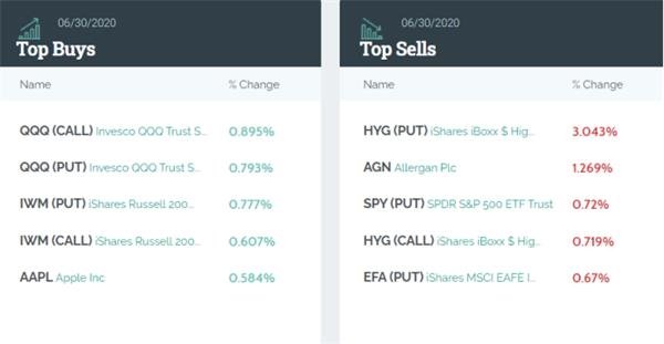 花旗前五大加倉(cāng)股分別是:Invesco納斯達(dá)克100指數(shù)ETF看漲期權(quán)和Invesco納斯達(dá)克100指數(shù)ETF看跌期權(quán),iShares羅素2000指數(shù)ETF看跌期權(quán)和iShares羅素2000指數(shù)ETF看漲期權(quán)和蘋果公司??梢钥闯觯ㄆ於径戎攸c(diǎn)關(guān)注的或許是科技股和小盤股。