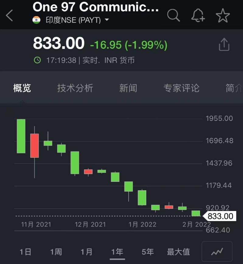 “印度版”支付寶股價跌近6成巴菲特都虧了50%