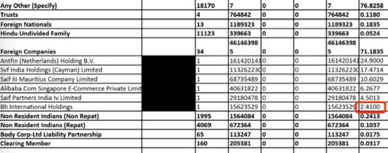 Paytm上市后,伯克希爾的持股有所稀釋。據(jù)Paytm今年1月披露的文件,截至2021年12月31日,伯克希爾通過Bh International Holdings持有Paytm1562.35萬股股票,持股比例約2.41%。