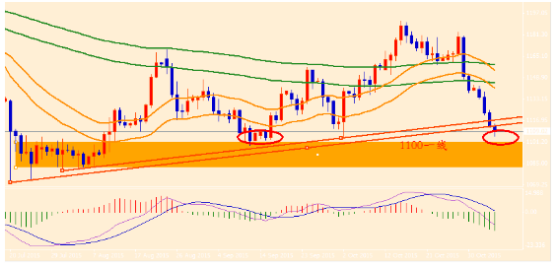 黃金:壓力1115 1113 1110支撐1100 1095 1090