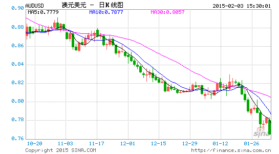 客戶端 查看最新行情 澳洲聯(lián)儲公布年內(nèi)首份利率決議,宣布降息25個基點至2.25%,并表示聯(lián)儲執(zhí)委會認為未來進一步降息也是合適的政策舉措。受該利空消息影響,澳元兌美元在決議后出現(xiàn)急挫,暴跌逾百點至2009年6月以來新低0.7649。