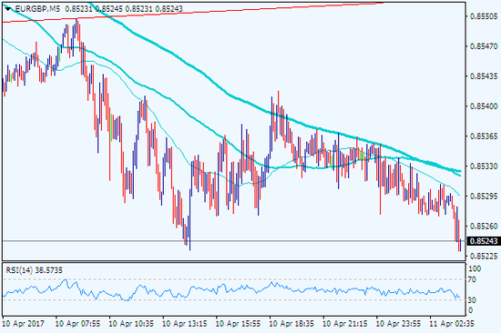 5分鐘圖上,歐元/英鎊短線走跌,不久后料將大幅下行,建議做空。