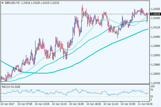 5分鐘圖上,英鎊/美元近期連續(xù)走升,匯價(jià)已在1.24上方運(yùn)行,短期內(nèi)匯價(jià)前景不明,建議觀望。