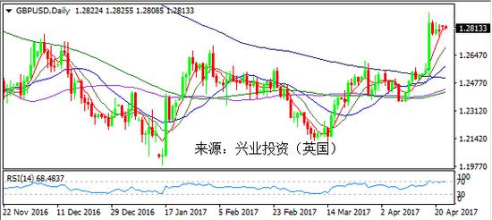 上周五在法國大選之前,謹(jǐn)慎的市場情緒令歐元/美元維持窄幅波動(dòng),但市場對民粹主義候選人龐勒和梅朗雄有望在本次投票中出線存有擔(dān)憂,導(dǎo)致歐元/美元連續(xù)第三日小幅下跌,收盤依舊持穩(wěn)于1.07關(guān)口上方。可今日亞市早盤在結(jié)果出爐之后,歐元走勢“瘋狂”。北京時(shí)間上周日下午2點(diǎn)左右,法國大選舉行首輪投票。最后結(jié)果顯示,馬克龍和龐勒突圍,支持率分別為23.82%和21.58%。該結(jié)果打消了市場的擔(dān)憂,而且馬克龍領(lǐng)先的優(yōu)勢也讓市場更相信他有望在第二輪5月7日的投票中當(dāng)選總統(tǒng),法國將繼續(xù)留在歐盟,歐元危機(jī)暫時(shí)解除。周一開盤歐元跳空高走上漲1.5%,一度上探去年十一月的高位1.09附近,目前短線有所下滑,維持在1.0845附近。預(yù)計(jì)該消息將繼續(xù)對歐元產(chǎn)生作用。數(shù)據(jù)方面關(guān)注德國進(jìn)出口和IFO等數(shù)據(jù)的表現(xiàn)。
