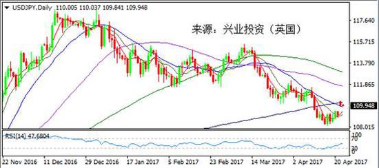 上周五市場濃厚的避險(xiǎn)情緒促使日元重新反彈,美元/日元最低下探109整數(shù)關(guān)口下方,最終持穩(wěn)于該水平上方。今日亞市早盤,在法國大選首輪投票馬克龍和龐勒晉級的結(jié)果出爐之后,日元幾乎是和歐元同步反應(yīng)劇烈的貨幣。該結(jié)果符合預(yù)期,緩解了市場的憂慮,避險(xiǎn)情緒也得到消除,日元出現(xiàn)暴跌,美元/日元?jiǎng)t跳空高走,最高一度觸及半個(gè)月高位110.32。目前美元/日元依舊維持在110整數(shù)關(guān)口上方,預(yù)計(jì)日內(nèi)還有走高的可能。稍后關(guān)注美元走勢和市場情緒變動(dòng)。
